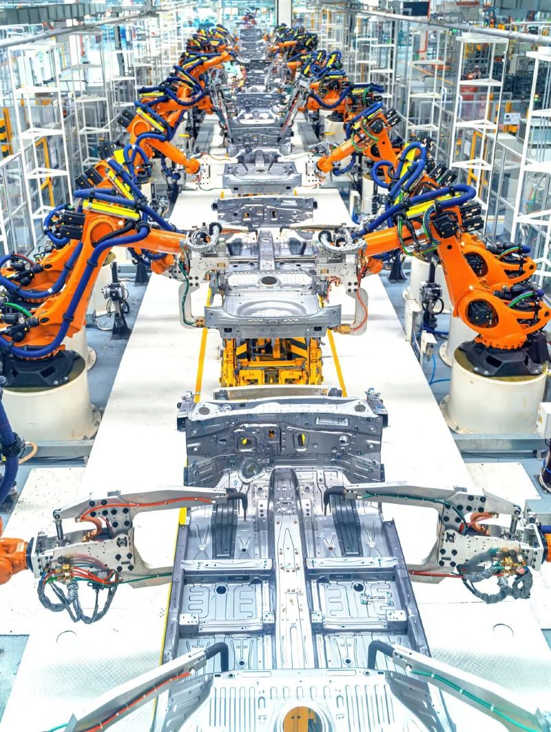 現(xiàn)代化的汽車(chē)制造廠焊接裝配線。(圖/視覺(jué)中國(guó))
